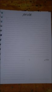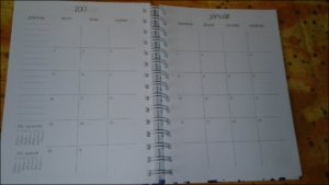 Mindegyik hónap előtt egy szép színes egész oldalas motivációs vagy csak jópofa szavas oldal kapott helyet. Vannak jobbak és vannak gyengébbek is. A január havi előlap a “Friss kezdet!” igazán találó. Eztán már tényleg a havi tervező, majd a heti naptároldalak jönnek.