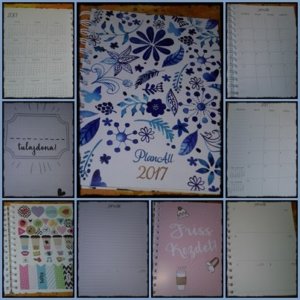 Egy kis körúti könyvesboltban bukkantam a Lizzy Card Papír Kft (Lizzy Calendar) által készített B5 nagyságú spirálozott heti tervező naptárra, a Plan All-ra. Többféle előlappal kapható, legtöbb hasonló stílusú, csak színeiben más (bár a minták nem ugyanilyenek, csak hasonló stílusúak, hangulatúak). Nagyon szépek voltak, nehéz volt választani.