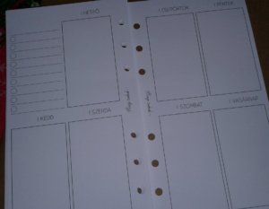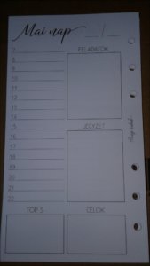 Épp a legjobbkor jött a csomag, mert két nap múla igen sűrű napom lesz: a legnagyobbnak új helyen különóra, a középsőnek iskolai farsangi mulatság, a legkisebbnek iskolaelőkészítő -csak győzöm kapkodni a fejem, hogy kit hova és mikor vigyek, vagy hozzak el, plusz van a sok apróság, mint uzsonna, amit előre el kell készítenem. Remek segítség ebben a napi tervek lap: